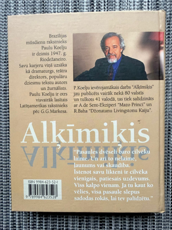 | “Alķīmiķis” ir stāsts par ganu Santjago, kurš sapņo atrast slēptu dārgumu pie Ēģiptes piramīdām. Ceļojumā viņš sastop skolotājus un zīmes, kas māca sekot savai “Personīgajai leģendai”. Grāmata atklāj, ka patiesie dārgumi ir iekšējā izaugsme, drosme piepildīt sapņus un pašizziņa. | |