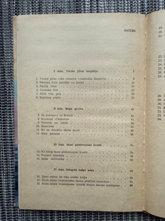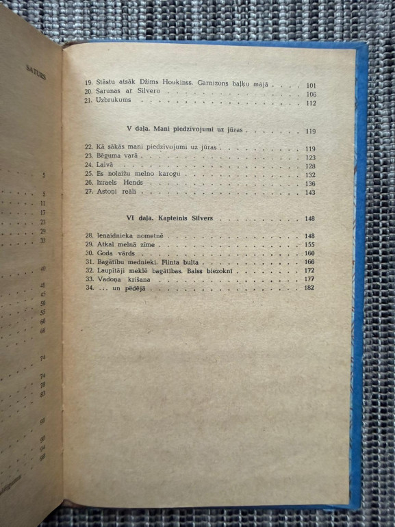 | Klasisks pirātu piedzīvojumu romāns par Džimu Hokinss, kurš dodas meklēt noslēptu dārgumu salu. Stāsts pilns ar jūras ceļojumiem, nodevību un cīņu par bagātību. Ievērojams ar ikoniskajiem pirātu tēliem, piemēram, Garais Džons Silvers. | |