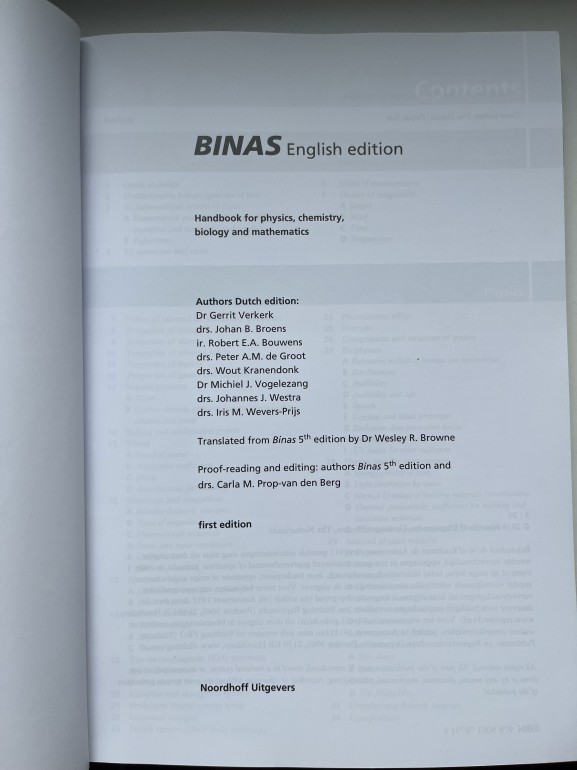 | BINAS English edition handbook for the natural sciences and mathematics. Translated from BINAS 5th edition Dutch version handbook. Used during CCVX and Boswell-Beta exams. | |