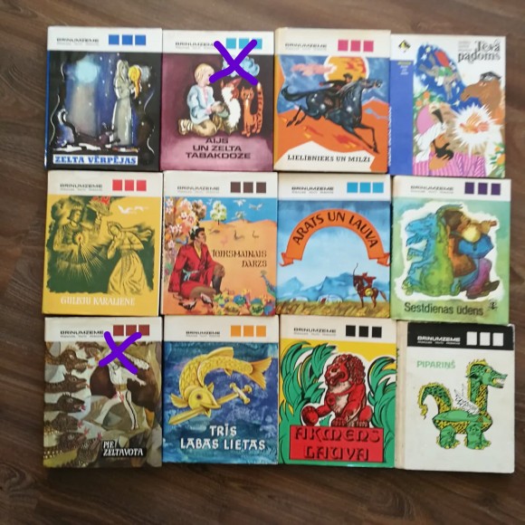 | No bildēs redzamajām atlikušas vien dažas, tāpēc labāk rakstiet, ja interesē kāda konkrēta grāmata. Grāmatas kopumā labā stāvoklī, dažas mazāk, dažas vairāk palietotas. Cena vidēji 1 eur par grāmatu. | |