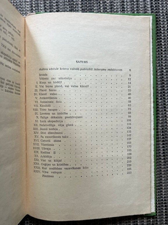 | Autora dienasgrāmatas stāsts par ceļojumu pa Latīņamerikas dienvidu krastiem 20. gadsimta 20. gados. Aprakstīta daba, cilvēki un jūras braucēju sapnis – Hornas zemesrags. Poētisks un vizuāli bagāts ceļojuma apraksts. | |