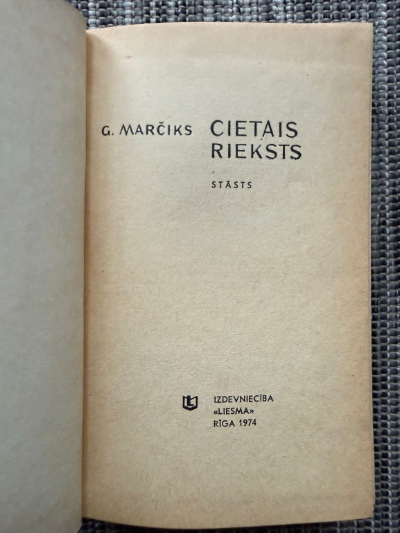 | “Cietais rieksts” (G. Marčiks) – latviešu daiļliteratūras darbs, izdots 1974. gadā izdevniecībā “Liesma” (280 lpp.). Grāmata atspoguļo sava laikmeta idejas un cilvēku likteņus, piedāvājot lasītājam dziļāku skatījumu uz dzīvi. | |
