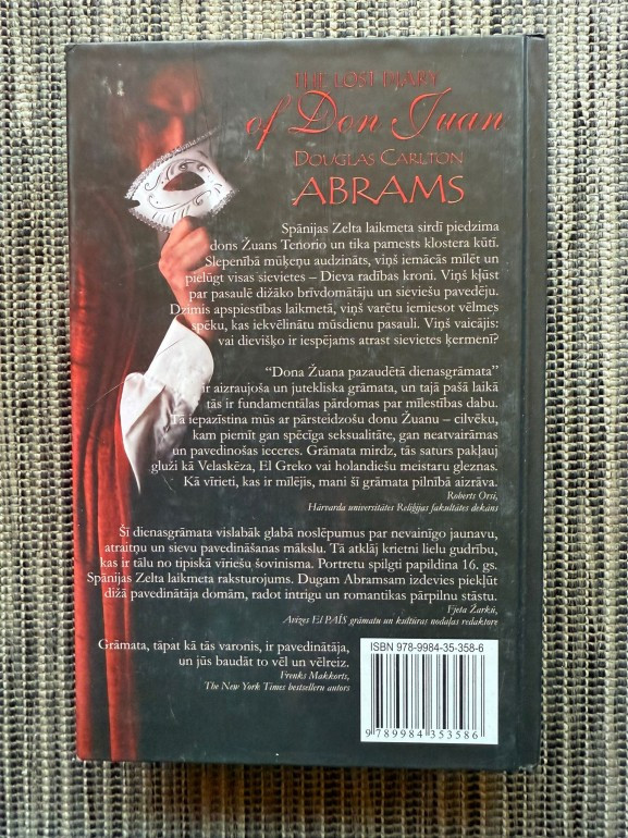 | Grāmata “Dona Žuana pazaudētā dienasgrāmata” ir iztēlots memuārs no Seviļas Zelta laikmeta: no klosterī pavadītas bērnības un markīza de la Motas izaudzināšanas par izsmalcinātu pavedinātāju līdz brīdim, kad Don Žuans saceļas pret Inkvizīciju un pirmo reizi neglābjami iemīlas. | |