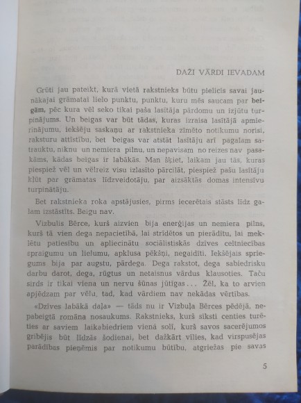 | "Dzīves labākā daļa"-tā autors nosaucis savu pēdējo darbu, kurā pārstaigā savas jaunības takas. Grāmata nav pabeigta, stāstījums apraujas tālā lauku nostūrī, kur galvenais varonis organizē sādžas kultūras dzīvi | |