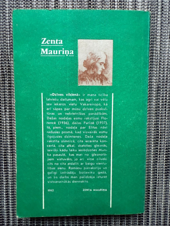 | “Dzīves vilcienā” ir viens no nozīmīgākajiem Zentas Mauriņas romāniem, izdots 1941. gadā. Darbā heroiskā pacietībā izskan cilvēka mūžīgās alkas pēc sevis apzināšanās, garīgiem meklējumiem un dzīves jēgas izpratnes. Tas ir dziļi filozofisks un emocionāli piesātināts darbs, kas pieder latviešu literatūras klasikas zelta fondam. | |