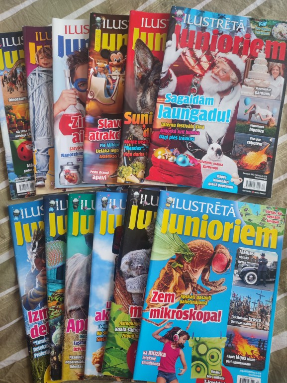 | 12 žurnāla izdevumi no 2012.gada. Labā stāvoklī, tikai uz dažiem vākiem uzrakstīts pastnieka atstāts uzraksts. Žurnālā atrodamas gan dažādi interesanti un izglītojoši faktu stāsti, gan receptes, krustvārdu mīklas. | |