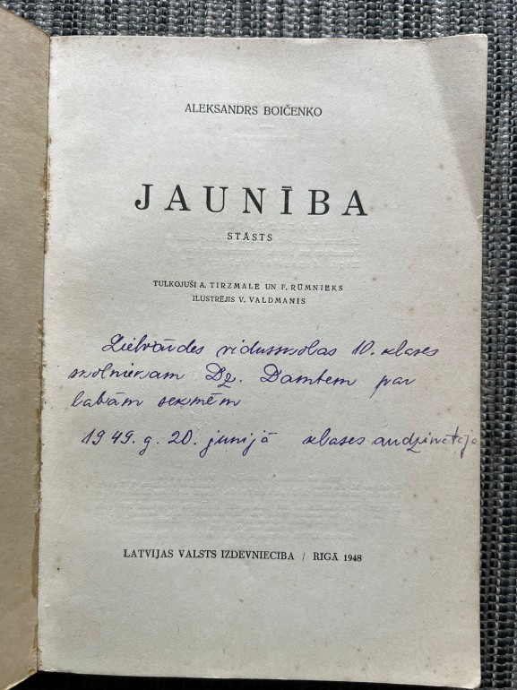 | Par grāmatu “Jaunība” (A. Boičenko, 1948) atradu tikai pamata informāciju: tā ir izdota Latvijas Valsts izdevniecībā, | |
