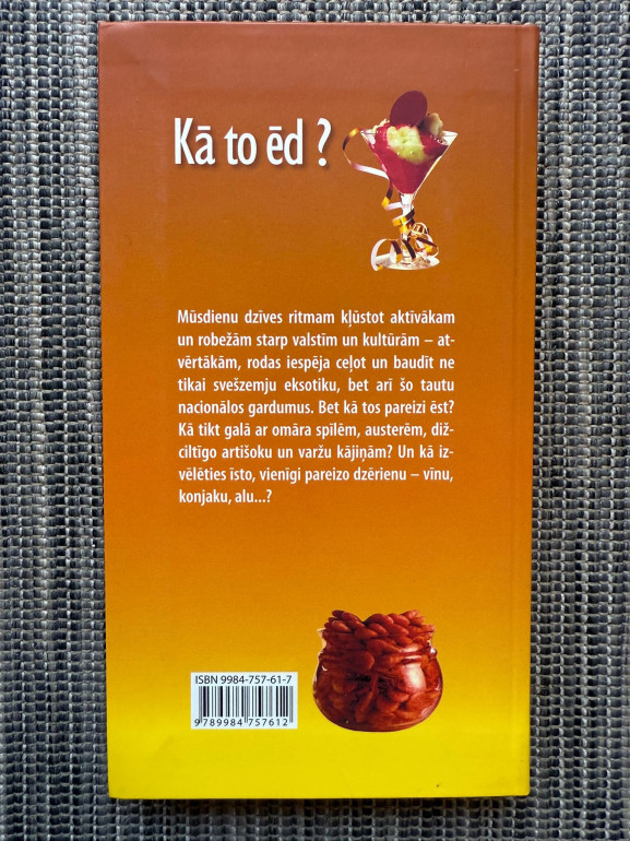 | "Kā to ēd?" ir ceļvedis svešzemju ēdienu pasaulē – kā pieklājīgi ēst gliemenes, avokado vai mango? D. Nātiņa un Dz. Zālīte palīdz neapjukt pie galda un justies pārliecināti arī visizsmalcinātākajās maltītēs. | |