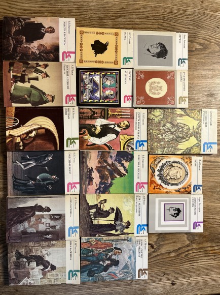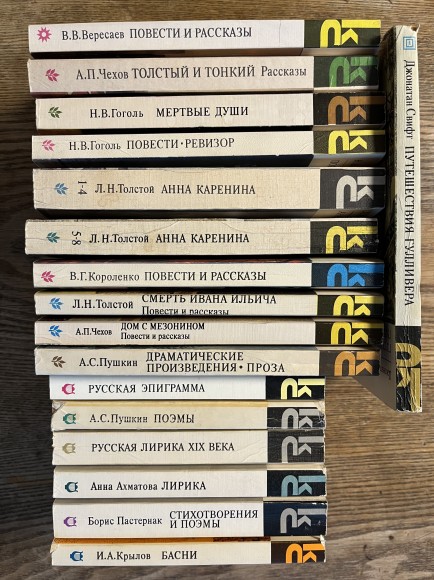 | Dž. Svifts "Gulivera ceļojumi"; N. V. Gogolis "Mirušās Dvēseles"; A. P. Čehovs "Māja ar mezonīnu"; L. N. Tolstojs "Ivana Iļjiča"; V. G. Koroļenko "Stāsti un stāsti"; L. N. Tolstojs "Anna Kareņina"(abas daļas); N. V. Gogolis "Stāsti; revidēns"; A. P. Čehovs "Resnais un Tievais"; V. V. Veresajevs "Stāsti"; A. S. Puškins "Dramatiskie darbi un proza"; A. S. Puškins "Poēmas" u.c. | |