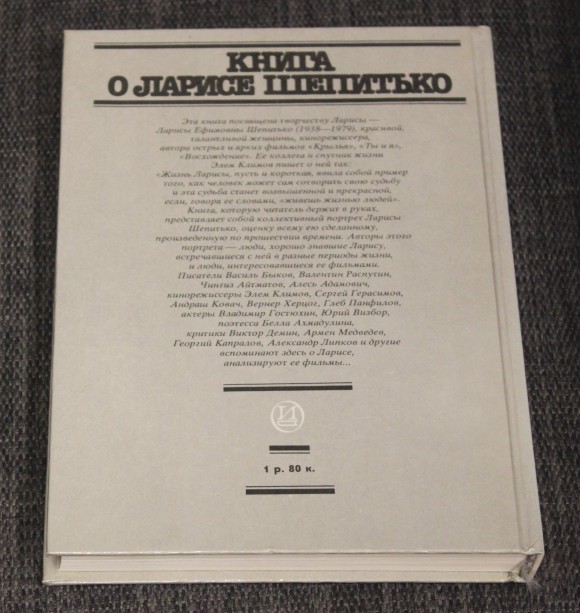 | Эта книга посвящена творчеству Ларисы — Ларисы Ефимовны Шепитько (1938—1979), красивой, талантливой женщины, кинорежиссера, автора острых и ярких фильмов «Крылья», «Ты и я», «Восхождение». | |