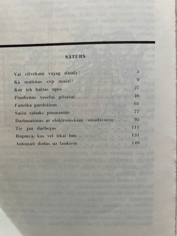 Stāstiņi par automātiku. Grāmatā viegli uztveramā valodā pastāstīts par mūsdienu automātisko ražošanu par to kā top viss kas nepieciešams cilvēkam par mašīnu. aparātiem un automātiem, kas palīdz strādāt. Grāmata domāta vidēja skolas vecuma bērniem. Kā jauna