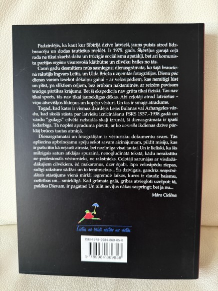 | Grāmatu "Latviešus Sibīrijā meklējot" veido 1975. gadā Ingvara Leiša sarakstītā dienasgrāmata un Ulda Brieža uzņemtās fotogrāfijas. Abi autori latviešus Sibīrijā meklējuši, ar velosipēdiem no maija līdz novembrim virzīdamies no Rīgas uz Vladivostoku. | |