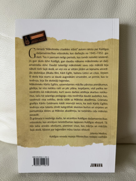 | Par Kuldīgas daiļamatniecības vidusskolu, kas Kuldīgā darbojās no 1945.–1952. gadam. Tas ir pavisam neilgs periods, kas tomēr pavisam noteikti ietekmējis gan skolu dzīvi Kuldīgā, gan daudzu nākamo mākslinieku un daiļamatnieku dzīvi. Daudzi talantīgi mākslinieki savu ceļu mākslā bija sākuši tieši šajā skolā, un viņi visi ar siltām jūtām un lepnumu atcerējās skolotājus | |