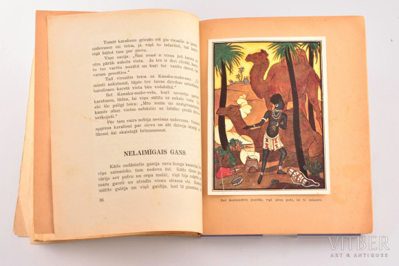 | Sešas Niklāva Strunkes krāsu ilustrācijas uzlīmētas uz kartona lapām, 18x21,5 cm, skavota ar papīra vāciņiem, izcili saglabāta, palielināti burti, izlases sastādītāja L. Laicena priekšvārds. 17 pasakas: austrāļu, jaungvinejas, āfrikas u. c. Izcili saglabāta. | |