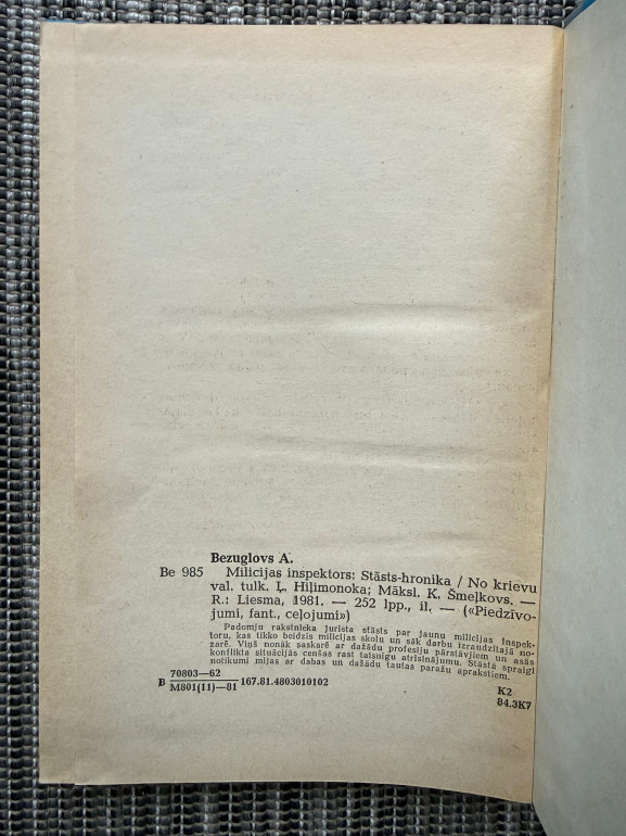 | “Milicijas inspektors” ir Anatolija Bezuglova detektīvromāns, kurā attēlota padomju milicijas darba ikdiena. Galvenais varonis izmeklē sarežģītus noziegumus, saskaroties ar kriminālās pasaules izaicinājumiem un morāliem lēmumiem. Romāns apvieno spriedzi, reālistisku vidi un padomju laika ideoloģiju. | |