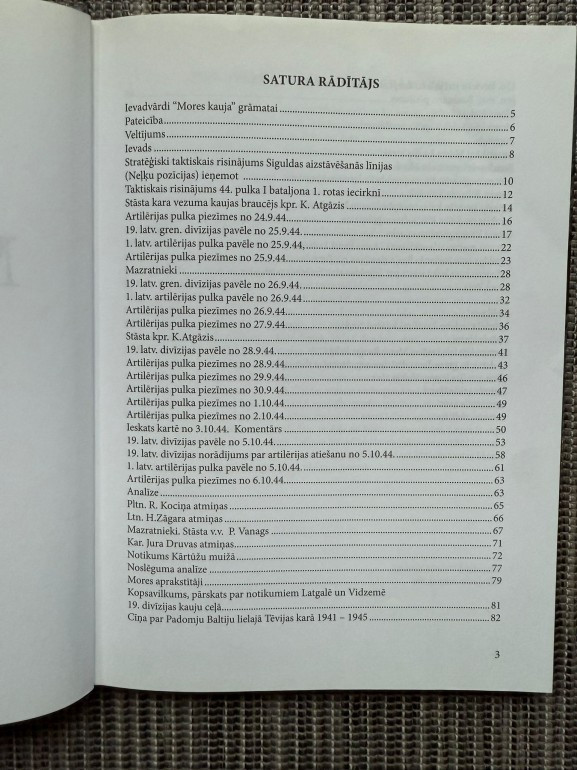 | Autentisks stāsts no Mores kaujas pirmās līnijas – virsnieka atmiņas par vienu no izšķirošākajām Otrā pasaules kara cīņām Latvijā. 'Mores kauja' ir personisks un dokumentāls vēstījums par drosmi, izturību un vēstures smagumu. | |
