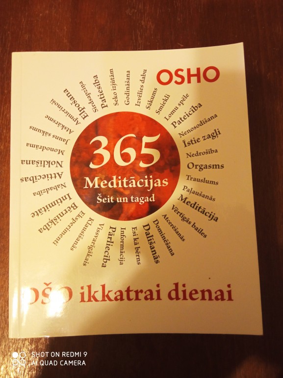 | Ošo atziņas – mūsu pārdomām gada garumā, ikvienai dienai. Lai kur jūs nonāktu, atcerieties, – tas ir tikai sākums. Pabeigtība nav iespējama, jo dzīve ir mūžīga. To atceroties, cilvēks vienmēr paliek bērns – zinātkārs, svaigs, dzīvīgs, brīnumus alkstošs. Tad katrs mirklis atver jaunas durvis. | |