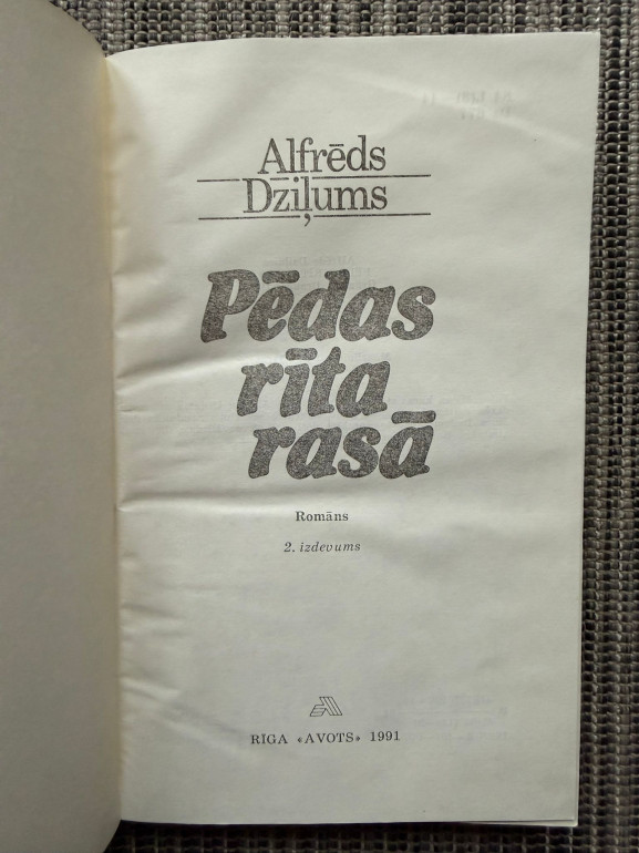 | "Pēdas rīta rasā" ir Alfrēda Dziļuma kultūrvēsturisks romāns par latviešu zemnieku dzīvi, darbu, ģimeni un mīlestību. Caurvij jaunā literāta centieni un viņa saikne ar 30. gadu Latvijas rakstniecību | |
