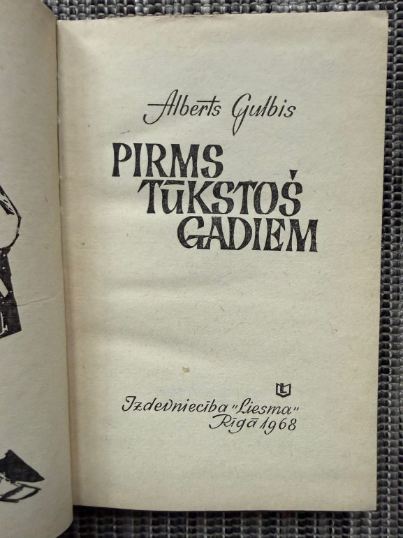 | Grāmata “Pirms tūkstoš gadiem” (Alberts Gulbis, 1968) ir vēsturisks stāsts jauniešiem par Kurzemes kuršu un lībiešu dzīvi XI gadsimtā. Centrā ir drosmīgais zēns Gaidis, kura zinātkāre aizved viņu sirotāju ceļā uz Dāniju. Svešumā viņš saprot, ka vislabāk ir mājās, savas dzimtas vidū. Darbs precīzi ataino senatnes sadzīvi, apģērbu, ieročus un cilšu likteņus. | |