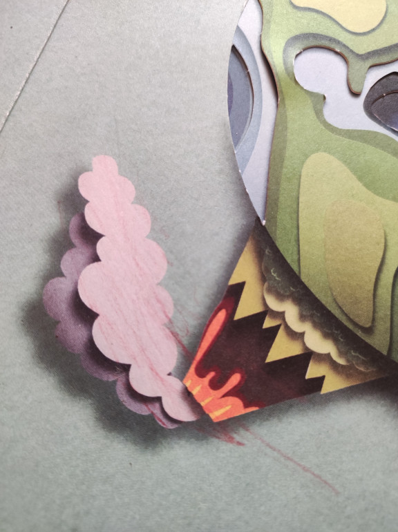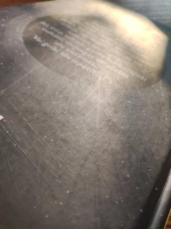 | Grāmatas vāks sašvīkāts, pirmajā lapā bērns izkrāsojis mākoņus. Visi lodziņi vietā. | |