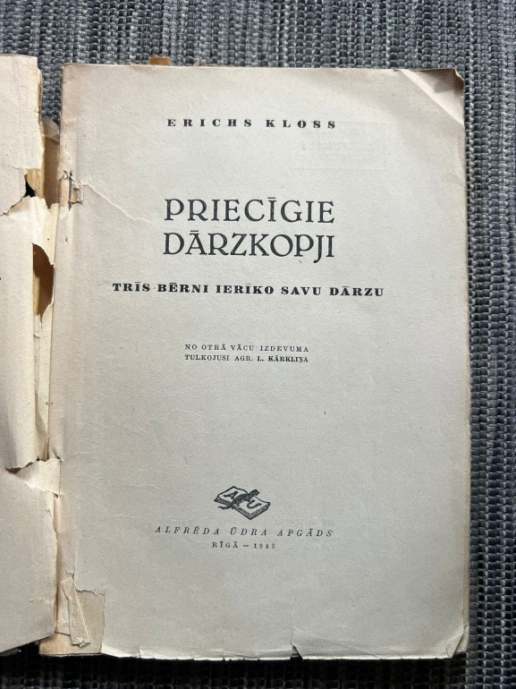 | Priecīgie dārzkopji – E. Kloss, izdevējs A. Ūdra apgāds, 1943, 168 lpp. Praktiska un viegli lasāma grāmata par dārzkopību, piemērota gan pieaugušajiem, gan bērniem. Vērtīgs izdevums tiem, kas interesējas par dārza kopšanu un augkopību. | |