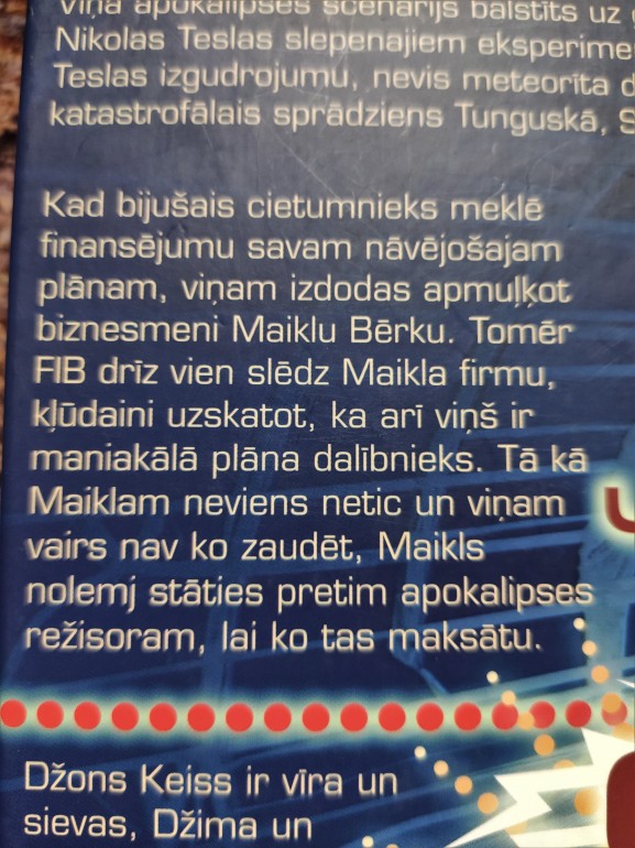 | No cietuma iznācis cilvēks, kas alkst atriebties visai pasaulei. Viņa apokalipses scenārijs balstīts uz ģeniālā izgudrotāja Nikolas Teslas slepenajiem eksperimentiem. | |