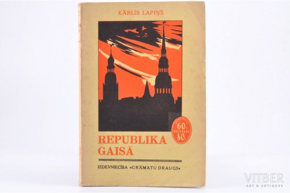 | Kārlis Lapiņš, "Republika gaisā", 1932 g., Grāmatu draugs, Rīga, 224 lpp.Padomju Latvijas periods atspoguļots daudzās atmiņās, sevišķi plaša bija vācbaltiešu autoru atmiņu literatūra par “Sarkano teroru”, un daiļliteratūrā: Aleksandra Grīna romāns “Dvēseļu putenis” (1933–1934), Kārļa Lapiņa-Merta romāni “Republika gaisā” (1932) | |