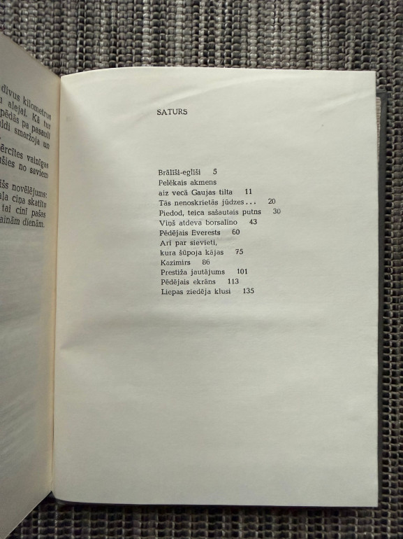 | Stāstu un atceres krājums par dzīves pieredzi, cilvēku likteņiem un emocionāliem pārdzīvojumiem. Humors, ironija un filozofiskas pārdomas par laiku un vērtībām. | |