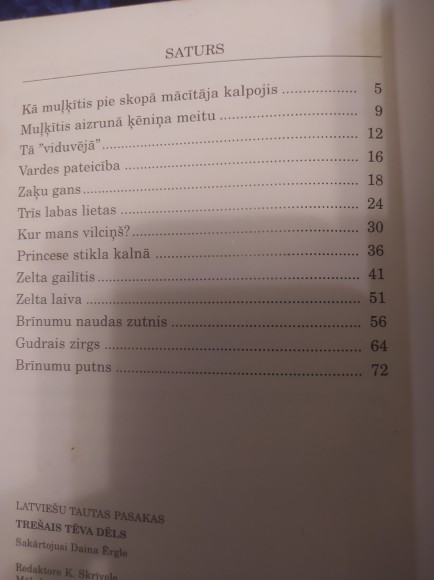 | Latviešu tautas pasakas, 13. Sērija: Skolas bibliotēka. Sprīdi pa sprīdim. 7-12 gadi. 5 lapas ar Daira Hofmaņa krāsu il., a5, brošēta, palielināti burti, Zvaigzne, 1998, 80 lpp. | |