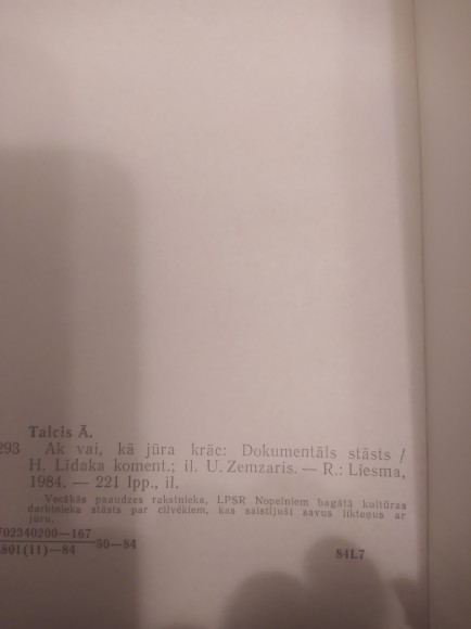 | Ak vai, kā jūra krāc dokumentāls stāsts Ādolfs Talcis ; māksl. Uldis Zemzaris ; rec. Jānis Plotnieks ; Harija Līdaka koment. | |
