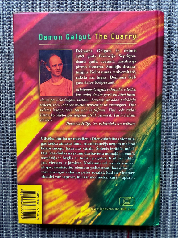 | Grāmata "Akmeņlauztuve" (autors Deimons Gelgats) ir psiholoģiski intensīvs romāns, kas risinās Dienvidāfrikas nomaļā lauku ainavā. Autobraucējs – mācītājs – uzņem stopētāju ar noslēpumainu pagātni. Kad atklājas viņa patiesā identitāte, sākas spriedzes pilns stāsts par izdzīvošanu, vainu un morāli. Vienam būs jāmirst | |