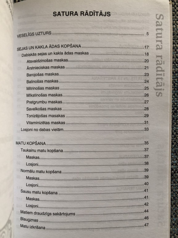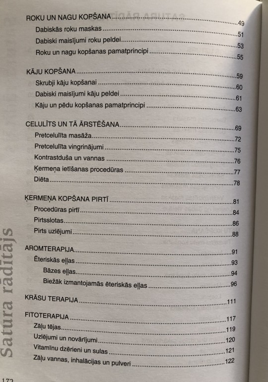 | Grāmata sniedz praktiskus padomus, kuri var noderēt ikdienā arī tad, ja nav daudz laika un naudas. Viss, kas nepieciešams veselībai un skaistumam, atrodams tepat mums līdzās. Jāvelta sev tikai nedaudz laika un mīlestības - un rezultāts būs lielisks. | |