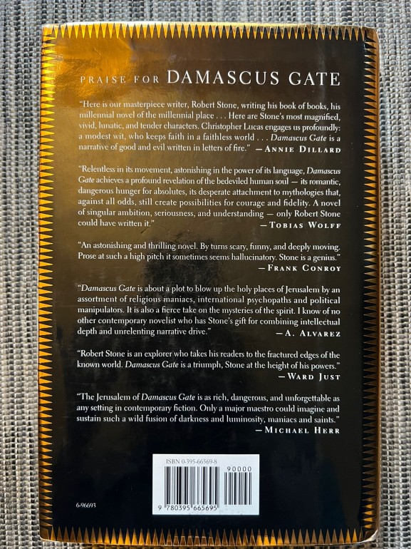 | Grāmata “Damascus Gate” ir politiski literārs trilleris par Jeruzalemi 1990. gados: amerikāņu žurnālists Kristoferis Lūkass, izmeklējot reliģiskos fanātiķus un “Jerusalem syndrome”, atklāj sazvērestību spridzināt Tempļa kalnu, savijoties ar džezdziedātāju un Sufi mistiķi Soniju Bārnsu, mesiānisku figūru Ādamu De Kafu un manipulatīvo Razielu Melkeru | |