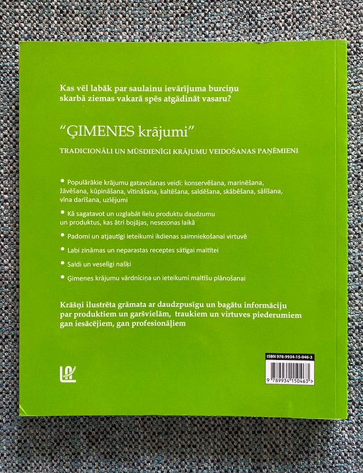 | Krāšņi ilustrēta grāmata ar daudzpusīgu un bagātu informāciju par produktiem un garšvielām, traukiem un virtuves piederumiem gan iesācējam, gan profesionāļiem! Grāmatā arī: - skats vēsturē un mūsdienīgi krājumu veidošanas paņēmieni; - populārākie krājumu gatavošanas veidi: konservēšana, marinēšana, žāvēšana, kūpināšana, saldēšana, skābēšana, sālīšana, vīna darīšana, uzlējumi. | |