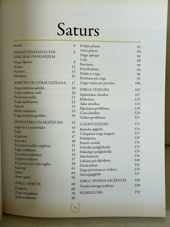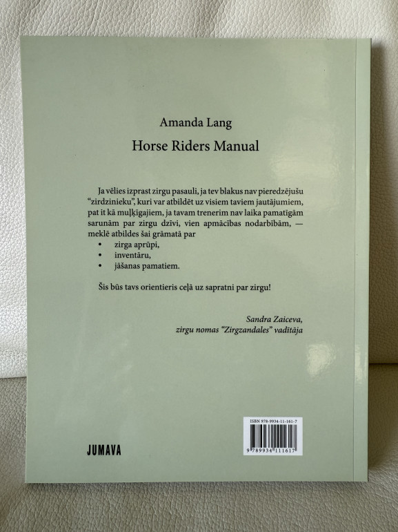 | Ja vēlies izprast zirgu pasauli, ja tev blakus nav pieredzējušu zirdzinieku, kuri var atbildēt uz visiem taviem jautājumiem, pat it kā muļķīgajiem, ja tavam trenerim nav laika pamatīgām sarunām par zirgu dzīvi, vien apmācības nodarbībām,- meklē atbildes šai grāmatā par: zirga aprūpi; inventāru; jāšanas pamatiem. Šis būs tavs orientieris ceļā uz sapratni par zirgu! | |