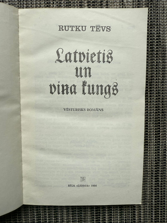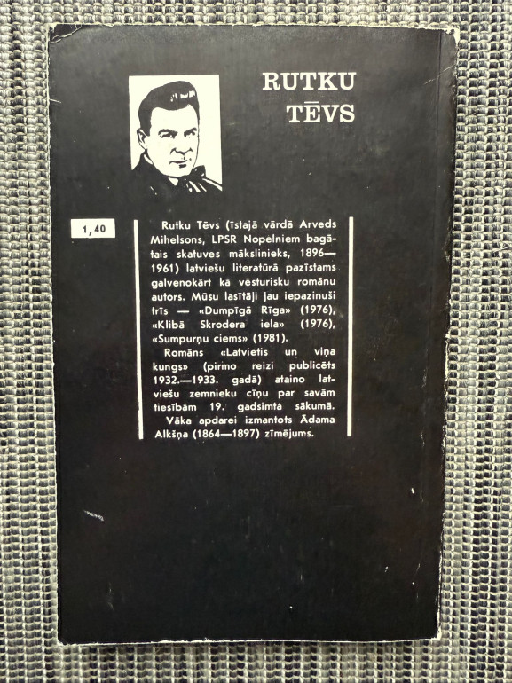 | 1984. gada izdevums “Latvietis un viņa kungs” ir Rutku Tēva vēsturisks romāns, kas attēlo latviešu zemnieku cīņu par savām tiesībām 19. gadsimta sākumā. Darbs izceļas ar sociālu ievirzi, vēsturisku precizitāti un tautas pašapziņas tēlojumu. Pirmoreiz publicēts 1932.–1933. gadā. | |