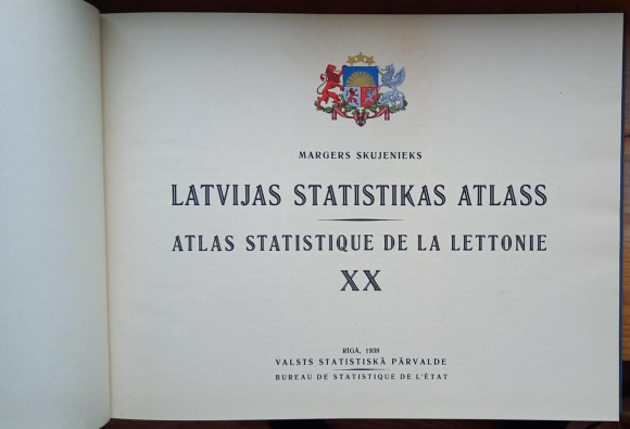 | Valsts statistiskā pārvalde, Rīgā, 1938. gadā. 56 lpp. Vāka audumā vietām traipi (redzams foto). | |
