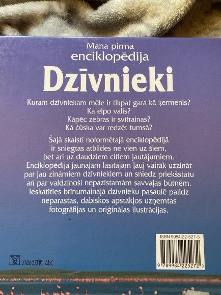 | Kuram dzīvniekam mēle ir tikpat gara kā ķermenis? Kā elpo valis? Kāpēc zebras ir svītrainas? Kā čūska var redzēt tumsā? Šajā skaisti noformētajā enciklopēdijā ir sniegtas atbildes ne vien uz šiem, bet arī uz daudziem citiem jautājumiem. Ļauj vairāk uzzināt par jau zināmiem dzīvniekiem un sniedz priekšstatu ari par valdzinoši nepazīstamām savvaļas būtnēm. Ieskatīties brīnumainajā dzīvnieku ... | |