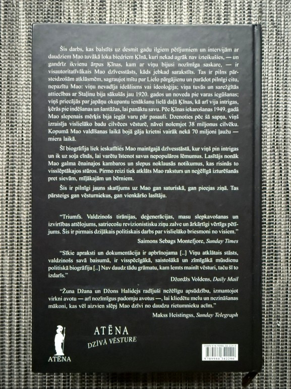 | Žunas Džanas un Džona Halideja grāmata “Mao, cits stāsts” atklāj personisku un kritisku skatījumu uz Mao Dzeduna dzīvi un politisko ceļu. Darbs apvieno biogrāfiju un vēsturisko analīzi, atklājot gan personīgo raksturu, gan Ķīnas revolūcijas ietekmi uz cilvēkiem un sabiedrību. | |