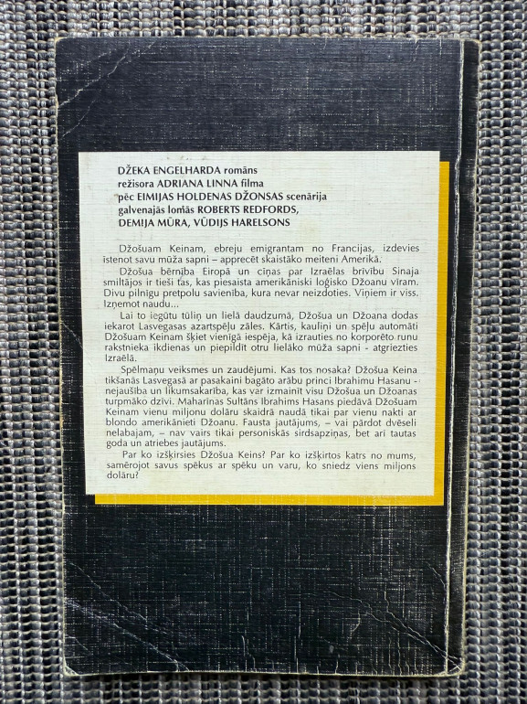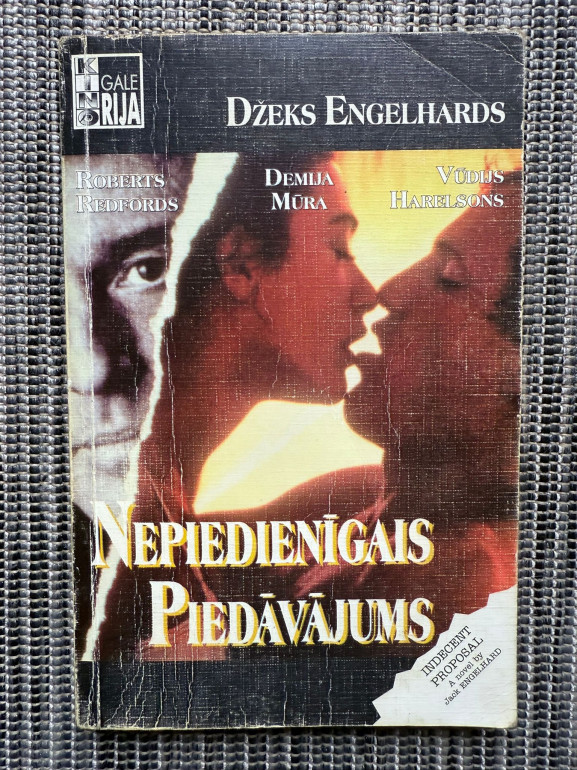 | Grāmata “Nepiedienīgais piedāvājums” (Džeks Engelhards) ir psiholoģisks romāns par mīlestību, morāli un naudas varu. Džošs Keins, ebreju emigrants, apprec skaistāko sievieti Amerikā, bet viņu attiecības tiek pārbaudītas, kad miljardieris piedāvā miljonu dolāru par nakti ar viņa sievu. Stāsts par izvēlēm, kārdinājumu un to, ko cilvēks ir gatavs upurēt. | |