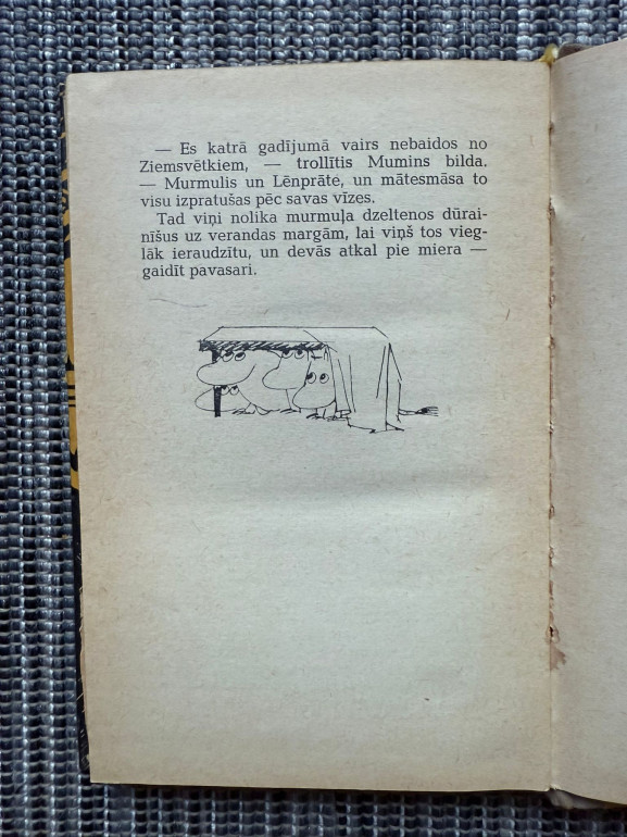 | Stāstu krājums par trollīšu Muminu pasauli un tās iemītniekiem. Tajā ir gan filozofiskas pasakas, gan sirsnīgi piedzīvojumi – par draudzību, bailēm, drosmi un brīvību. Iekļauts stāsts par Niniju, kas kļūst redzama, kad sajūt mīlestību | |