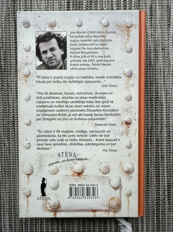 | Jana Martela romāns “Pī dzīve” ir filozofisks un piedzīvojumu pilns stāsts par zēnu, kurš pēc kuģa katastrofas paliek viens Klusajā okeānā kopā ar Bengālijas tīģeri. Grāmata pēta ticību, izdzīvošanu un cilvēka spēju atrast jēgu pat vissmagākajos apstākļos. | |