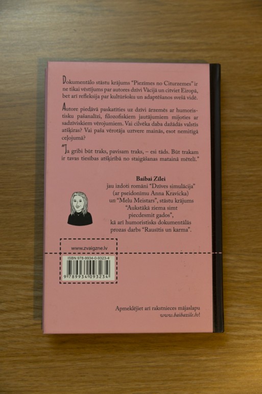 | Baiba Zīle "Piezīmes no citurzemes" ISBN 978-9934-0-9323-4 Izdevējs Zvaigzne Grāma lieliskā stāvoklī, jā jauna | |