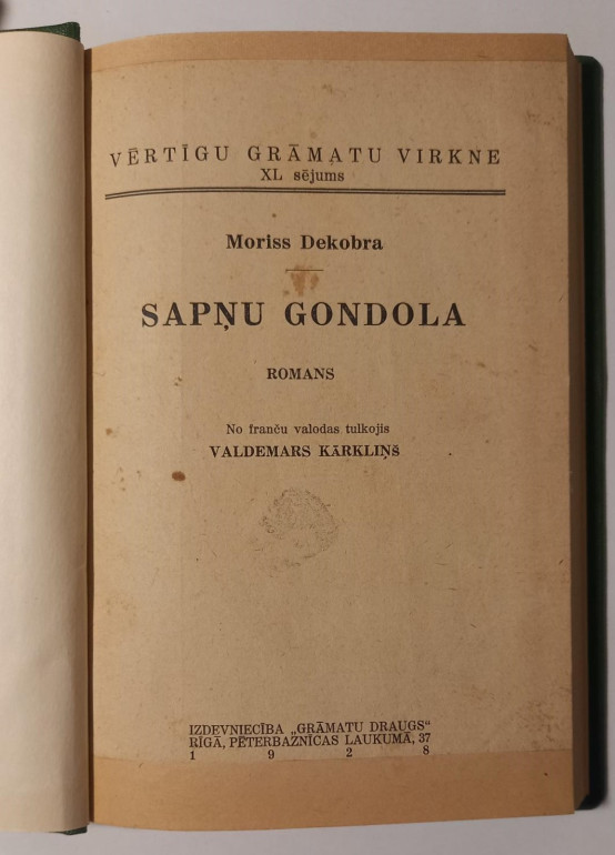 | "Grāmatu draugs", 1928. gads 218 lpp. Lapas dzeltējušas, vietām konservētas. Pāriesieta cietajos vākos. | |