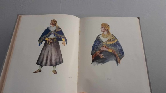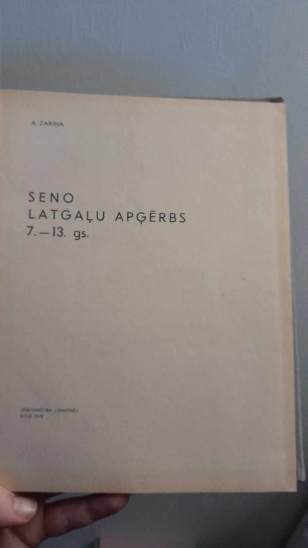 | Ļoti labā stāvoklī. Apģērba audumu materiāls un darināšanas tehnika; Sieviešu apģērbs: kājauti un apavi, galvas segas, audumi ar bronzas spirālīšu mežģinveida rotājumu, rotas; Vīriešu apģērbs. Zinātnisks izdevums; 216 lpp. teksta un 70 lpp. tabulu un vēl ar tabulu atsevišķā pielikumā. Ar krāsainiem tērpu, villaiņu un rotu zīmējumiem krītpapīra lapās. Skaistos audekla vākos. | |
