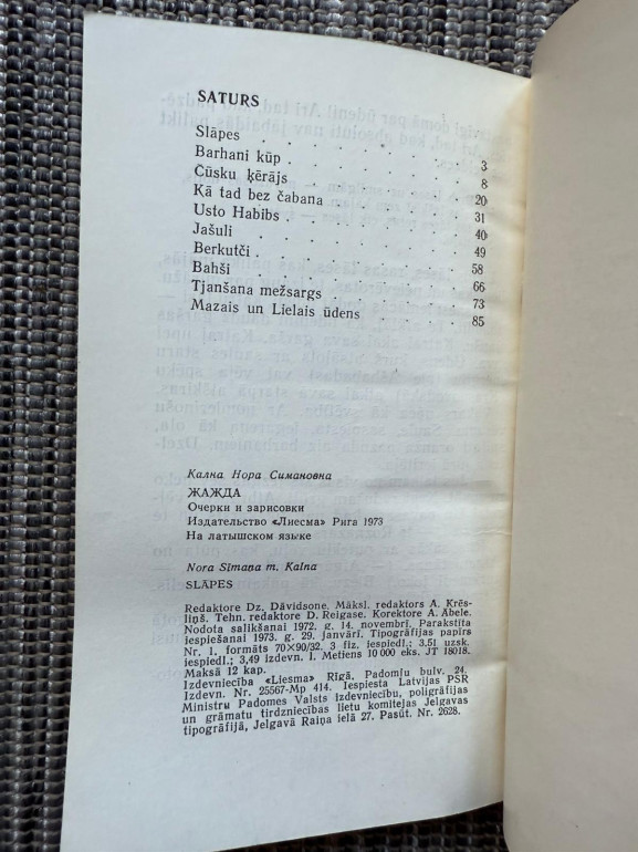 | Noras Kalnas stāstu krājums, izdots 1973. gadā. Darbos atklājas cilvēku iekšējā pasaule un laikmeta noskaņas, raksturīgas padomju perioda latviešu prozai. | |