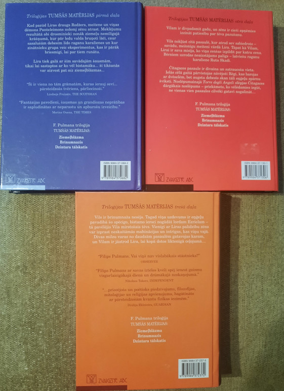 | F.Pulmana triloģija Tumšās matērijas: Ziemeļblāzma Brīnumnazis Dzintara tālskatis. | |