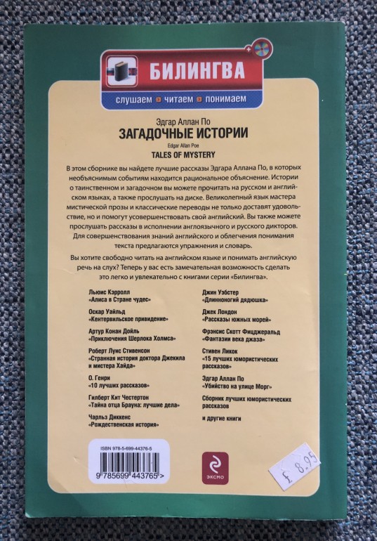 | Krievu-Angļu valodā + CD Vienā lapas pusē angļu valoda, otrā lapas pusē - krievu valoda. Lielisks veids, kā apgūt valodu! pat divas. CD nav obligāti jāklausās, pēc izvēles, kā bonuss. | |
